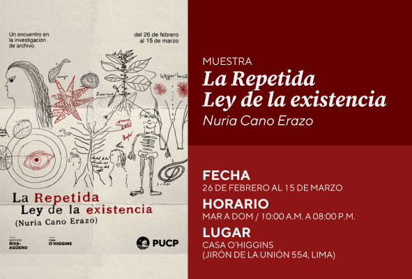 Desde las 5:00 p.m. del jueves 26 de febrero, podrás visitar la exposición “La Repetida Ley de la Existencia” de la artista e investigadora Nuria Cano Erazo, en la Casa O’Higgins.