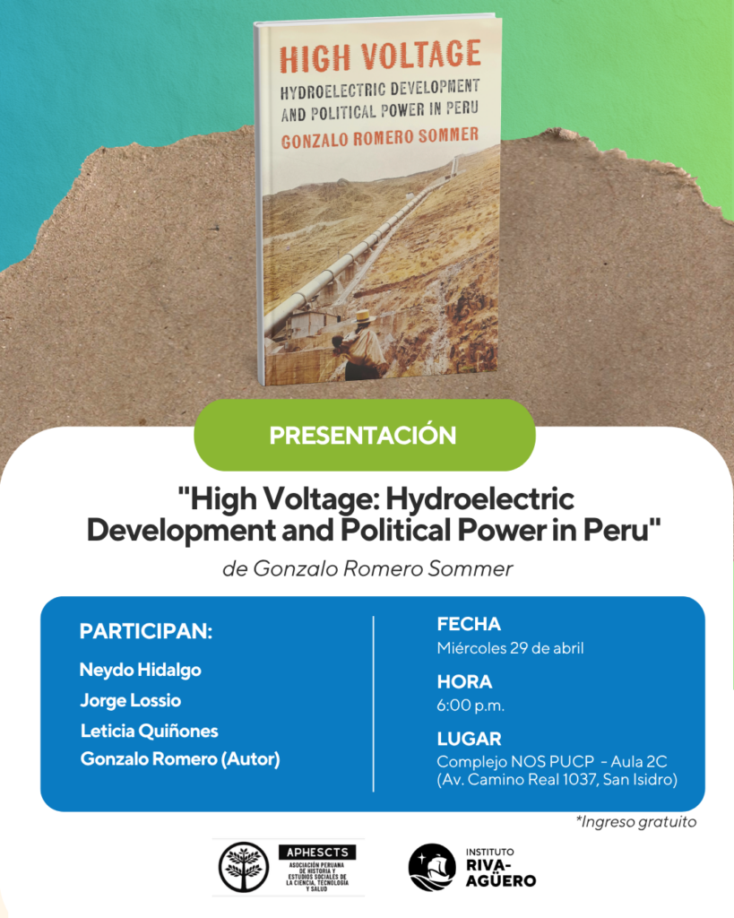 El Instituto Riva-Agüero invita a la presentación del libro “High Voltage: Hydroelectric Development and Political Power in Peru», de Gonzalo Romero Sommer, un estudio sobre cómo los proyectos de hidroelectrificación marcaron la modernización del país y revelaron tensiones clave en la formación del Estado peruano durante el siglo XX.